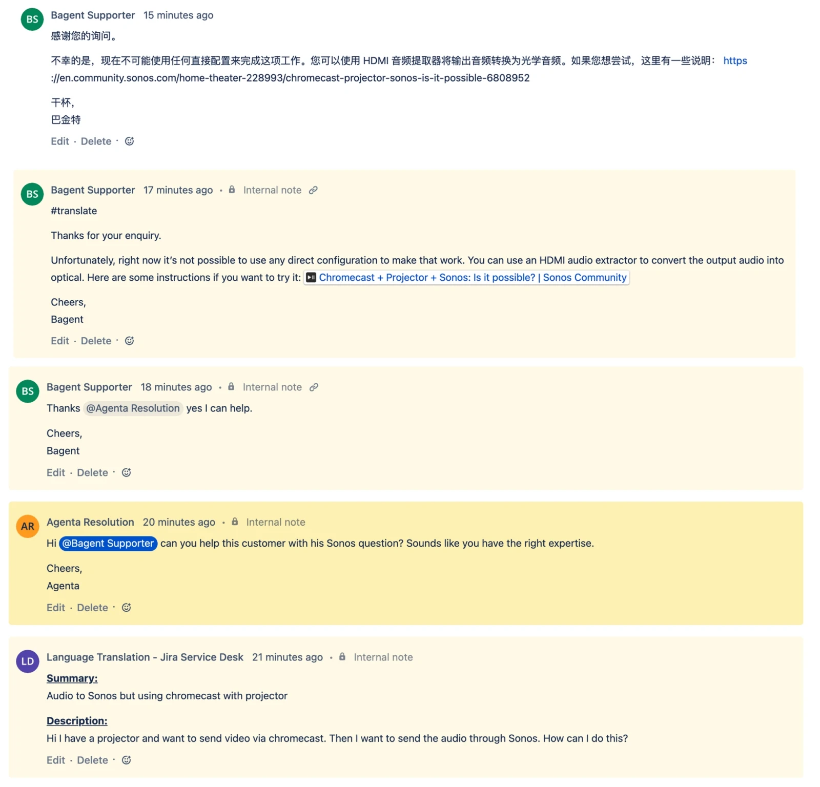 We developed a translation system within Jira Service Management that operates seamlessly: